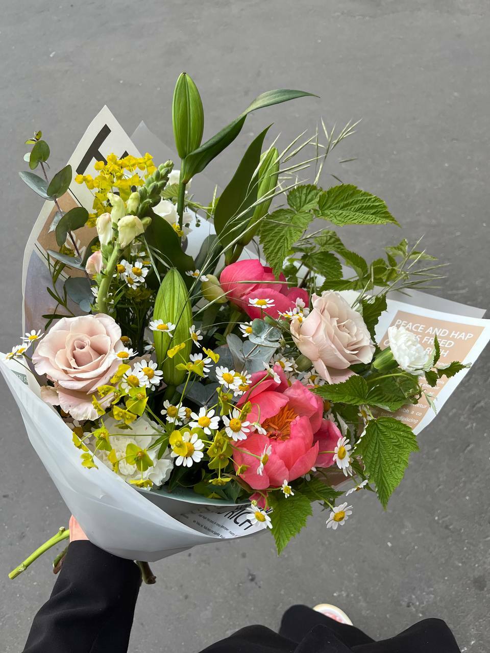 Букет с пионами и ветками 22000